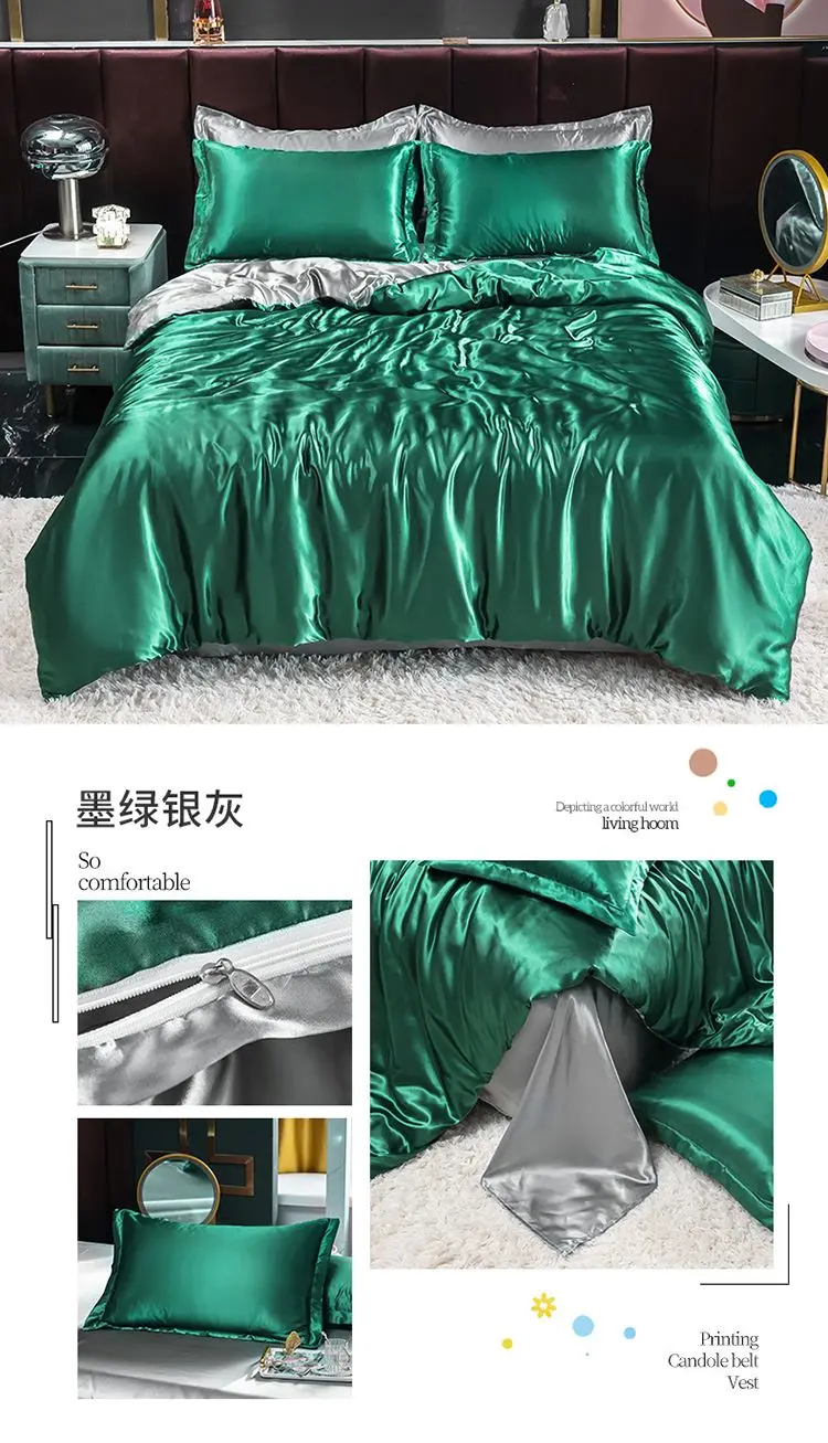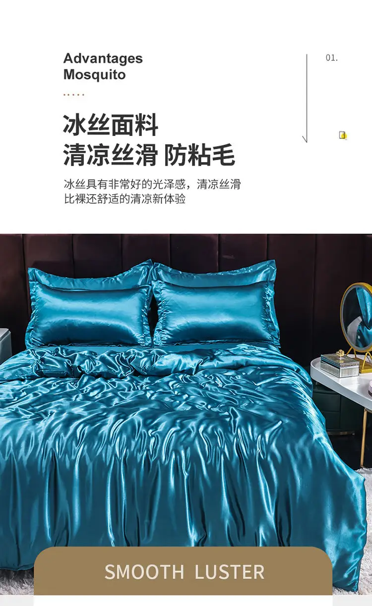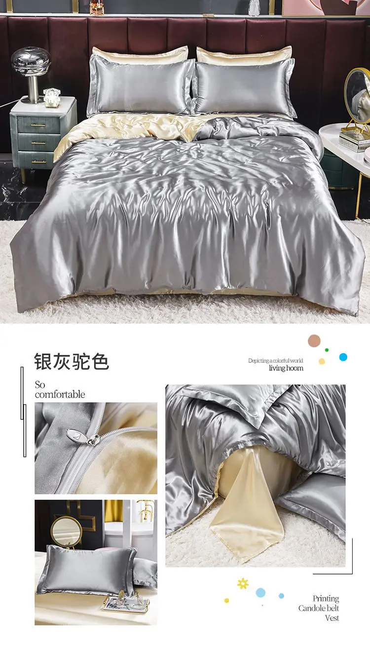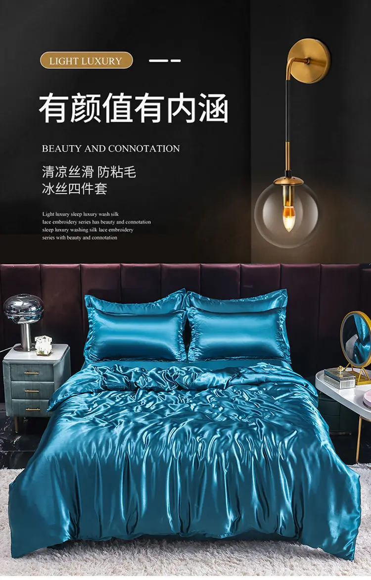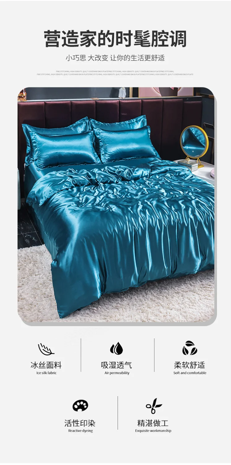 Indulge in Luxury with Our Premium Ice Silk Satin Bedding Set - Elegant Solid Color Duvet Cover and Pillowcase Collection for a Sophisticated Bedroom Makeover