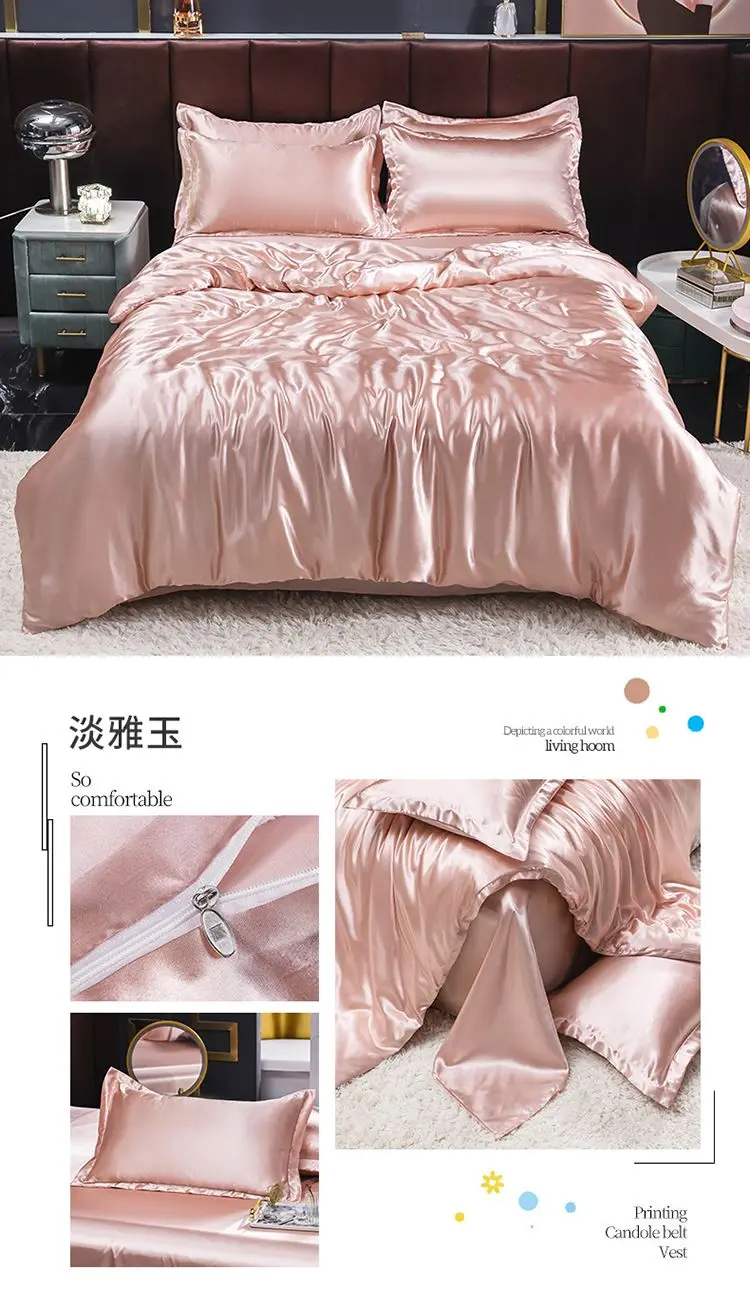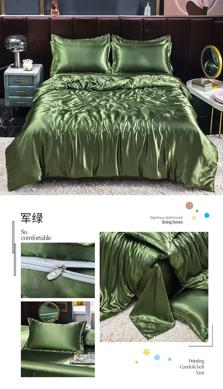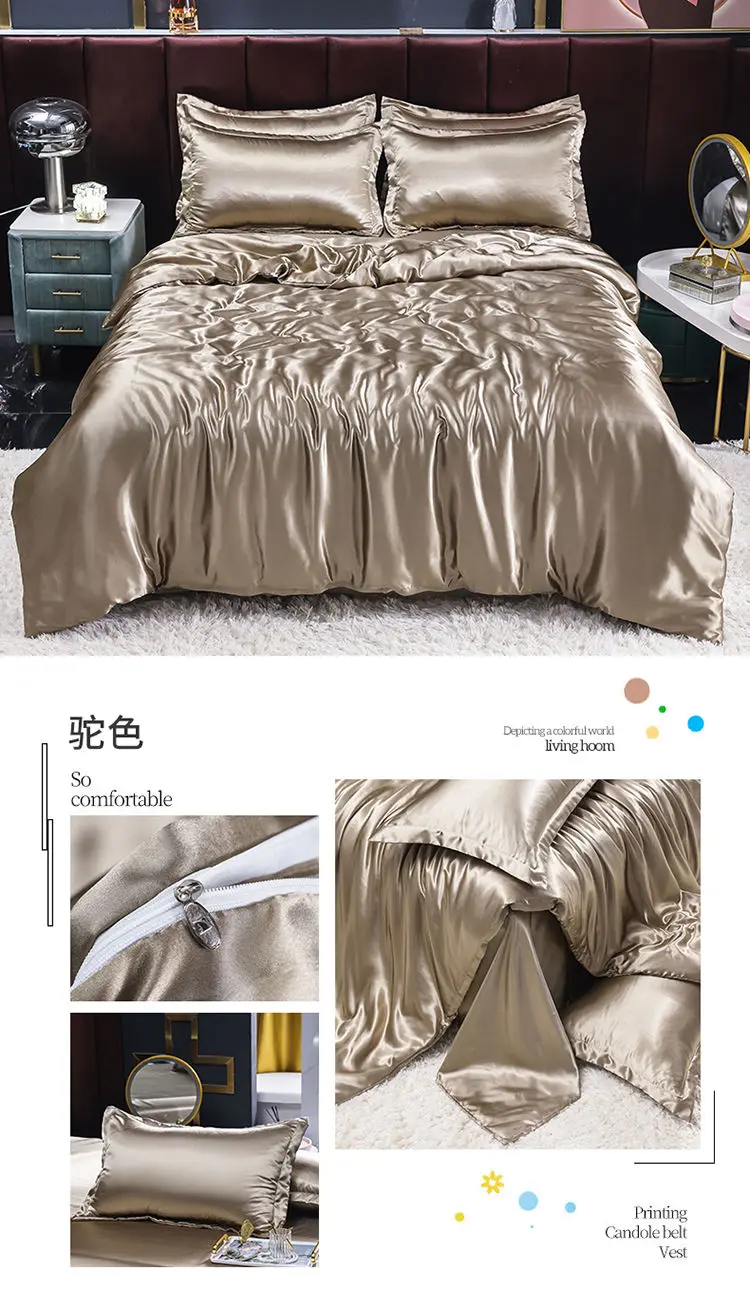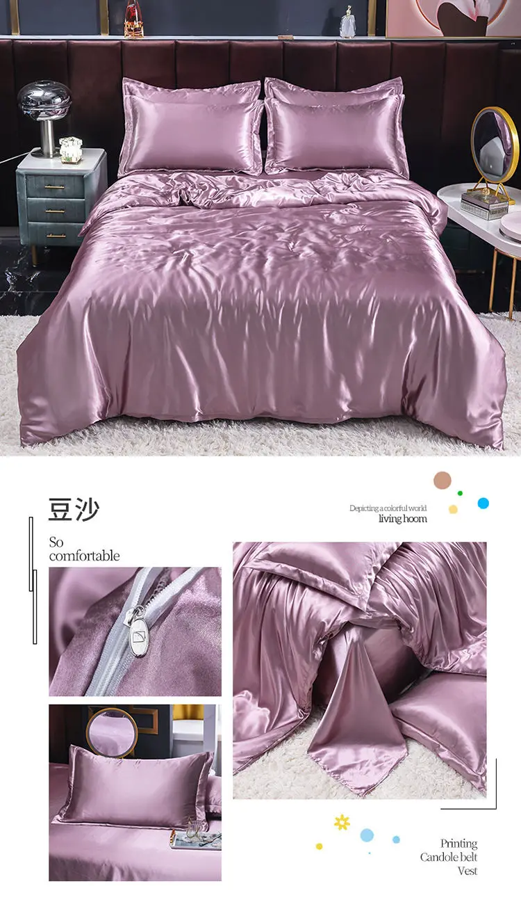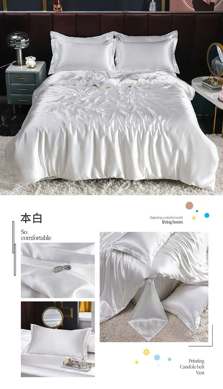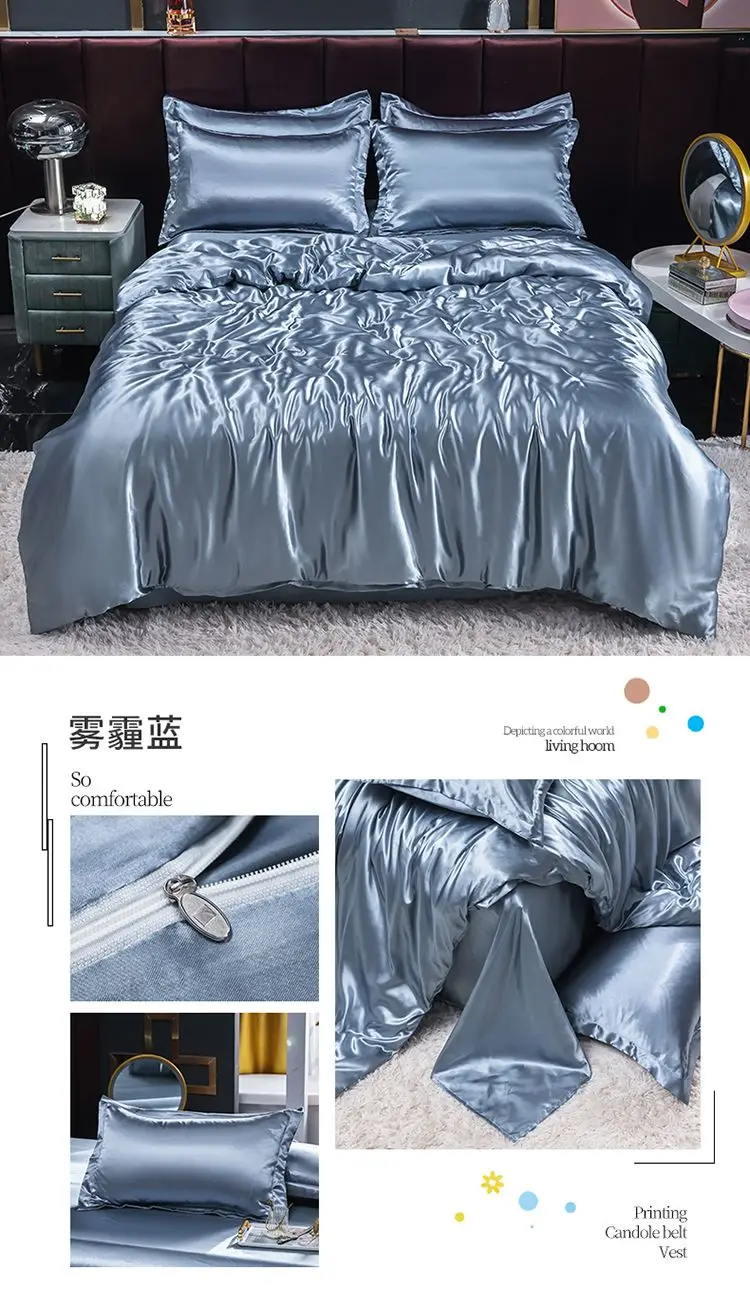 Indulge in Luxury with Our Premium Ice Silk Satin Bedding Set - Elegant Solid Color Duvet Cover and Pillowcase Collection for a Sophisticated Bedroom Makeover