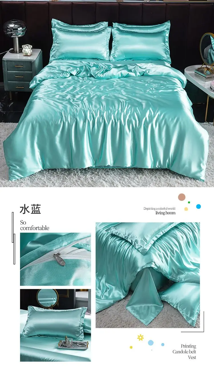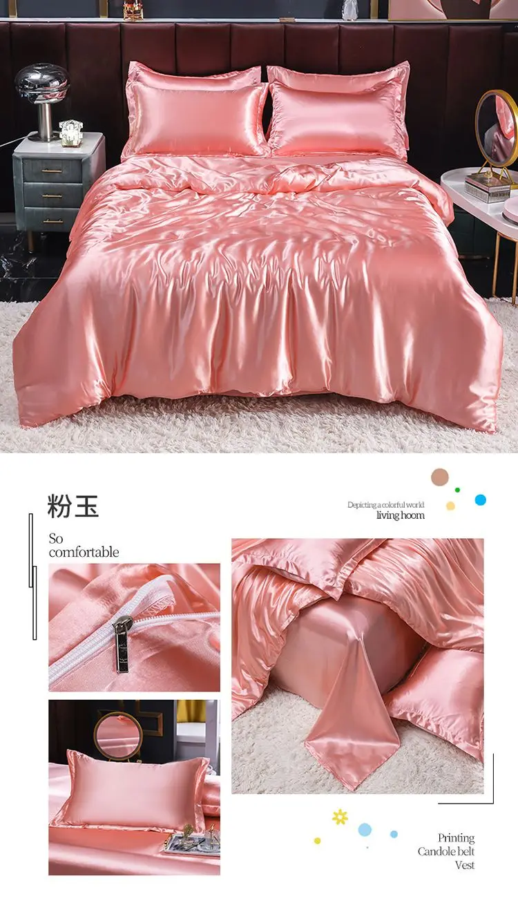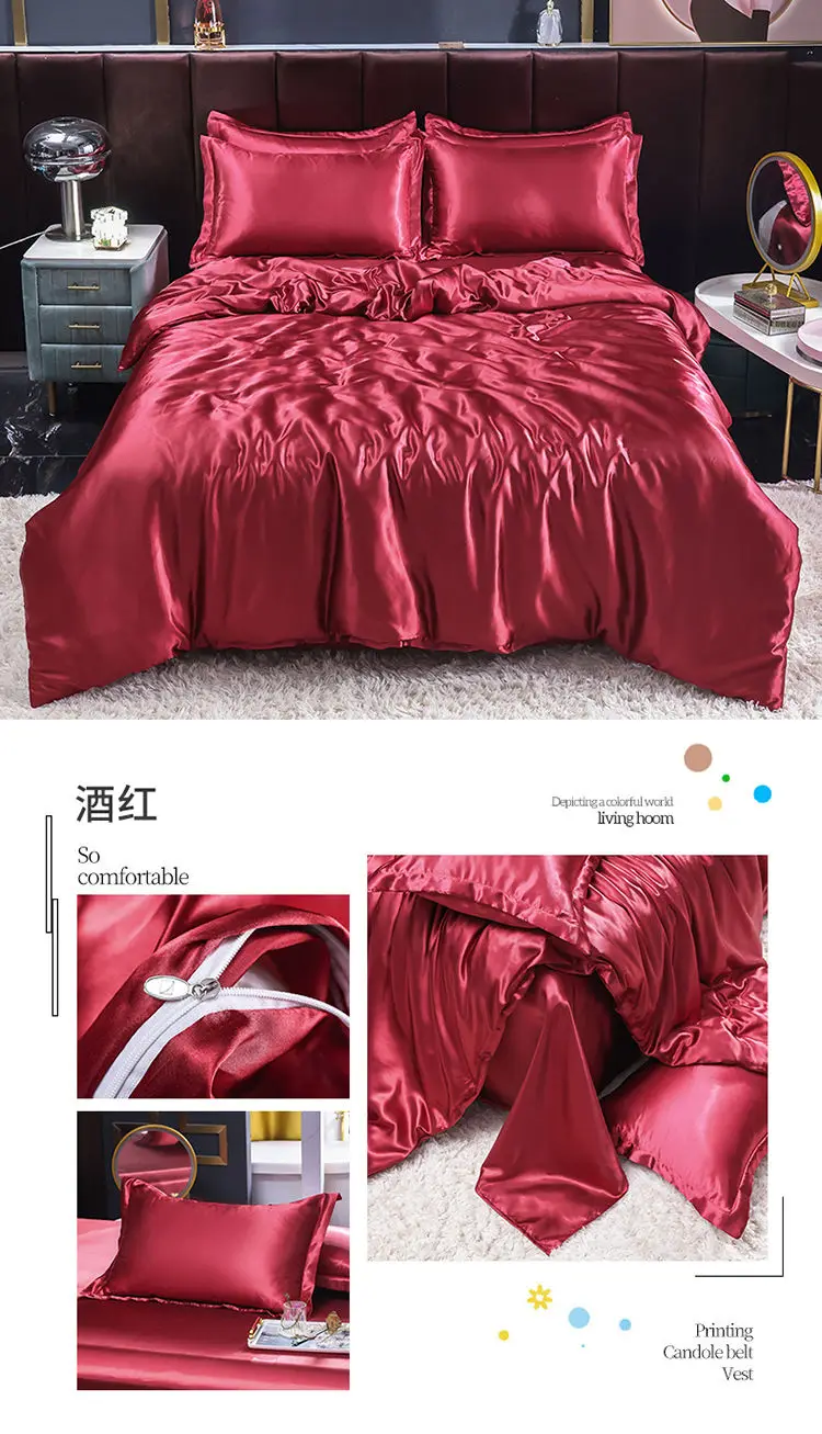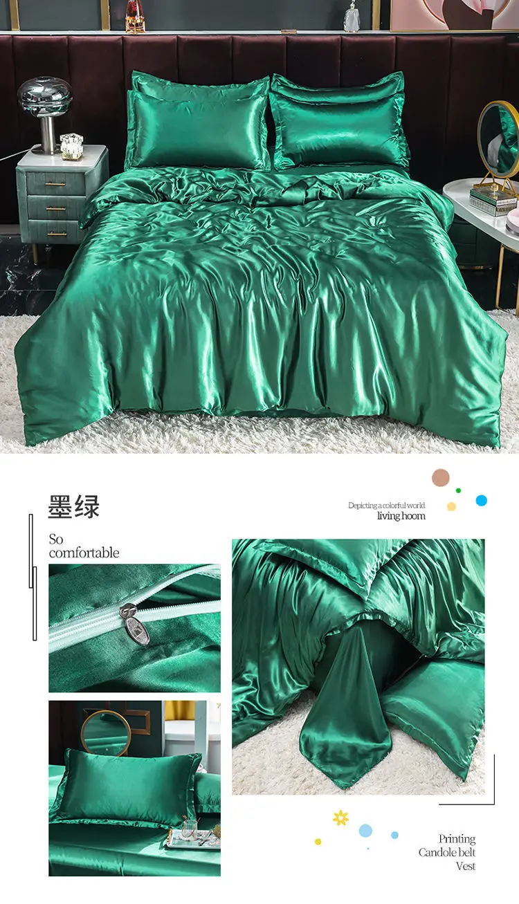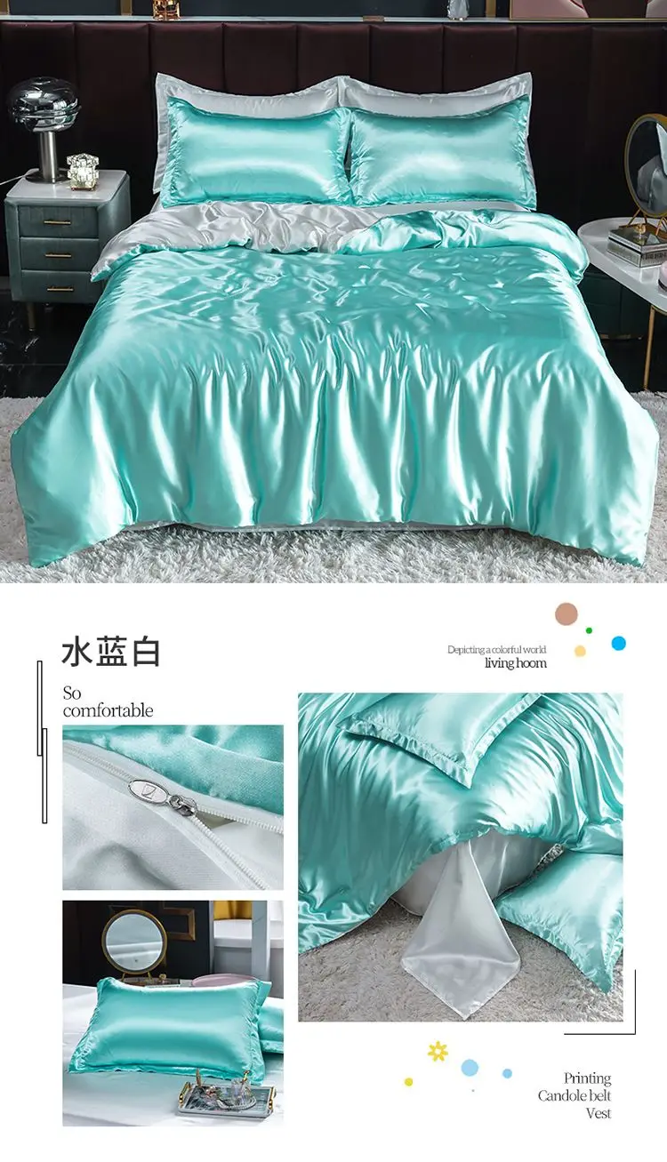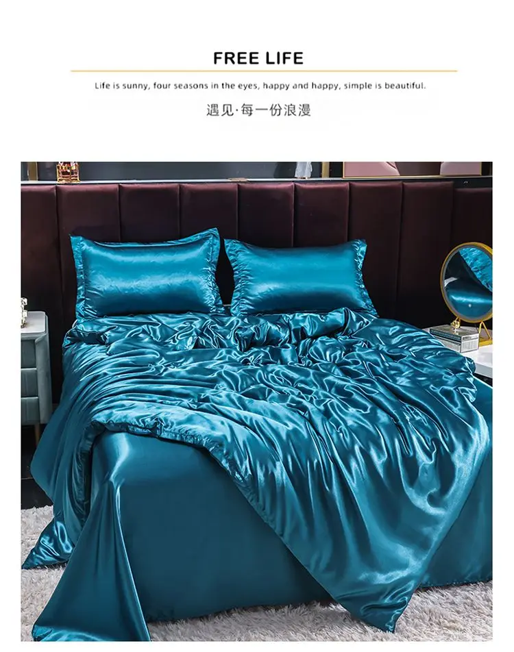 Indulge in Luxury with Our Premium Ice Silk Satin Bedding Set - Elegant Solid Color Duvet Cover and Pillowcase Collection for a Sophisticated Bedroom Makeover