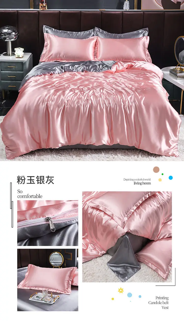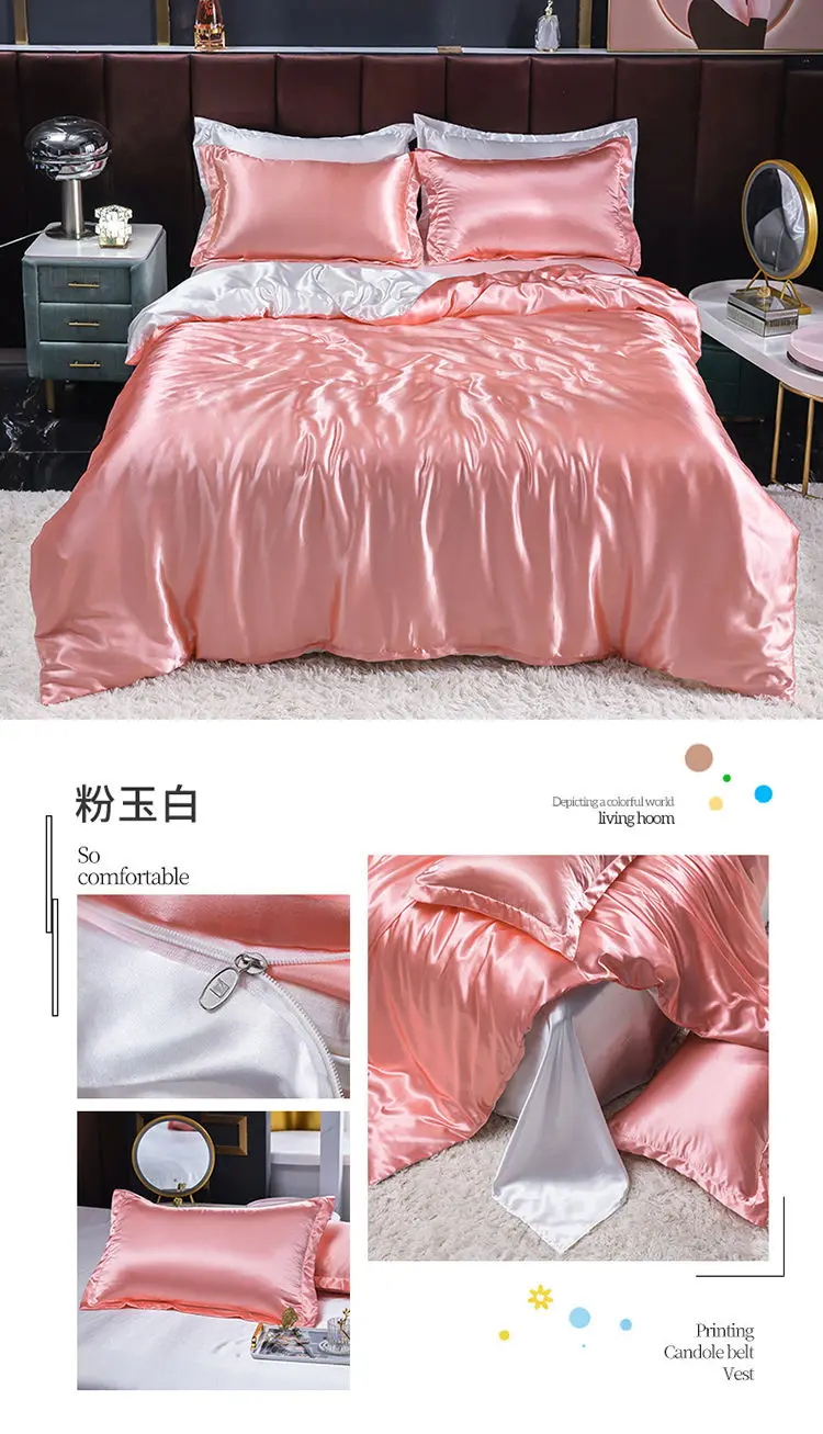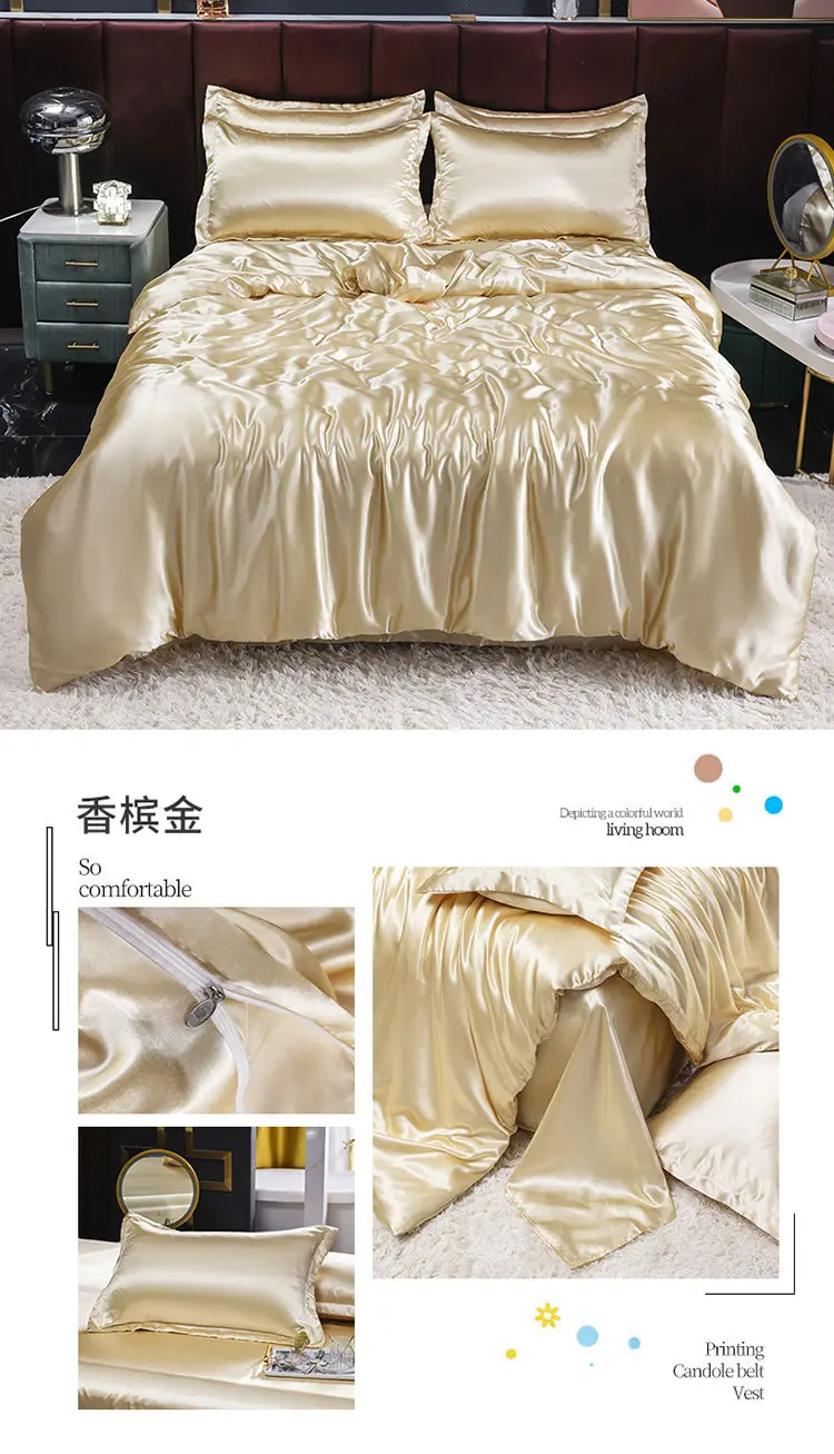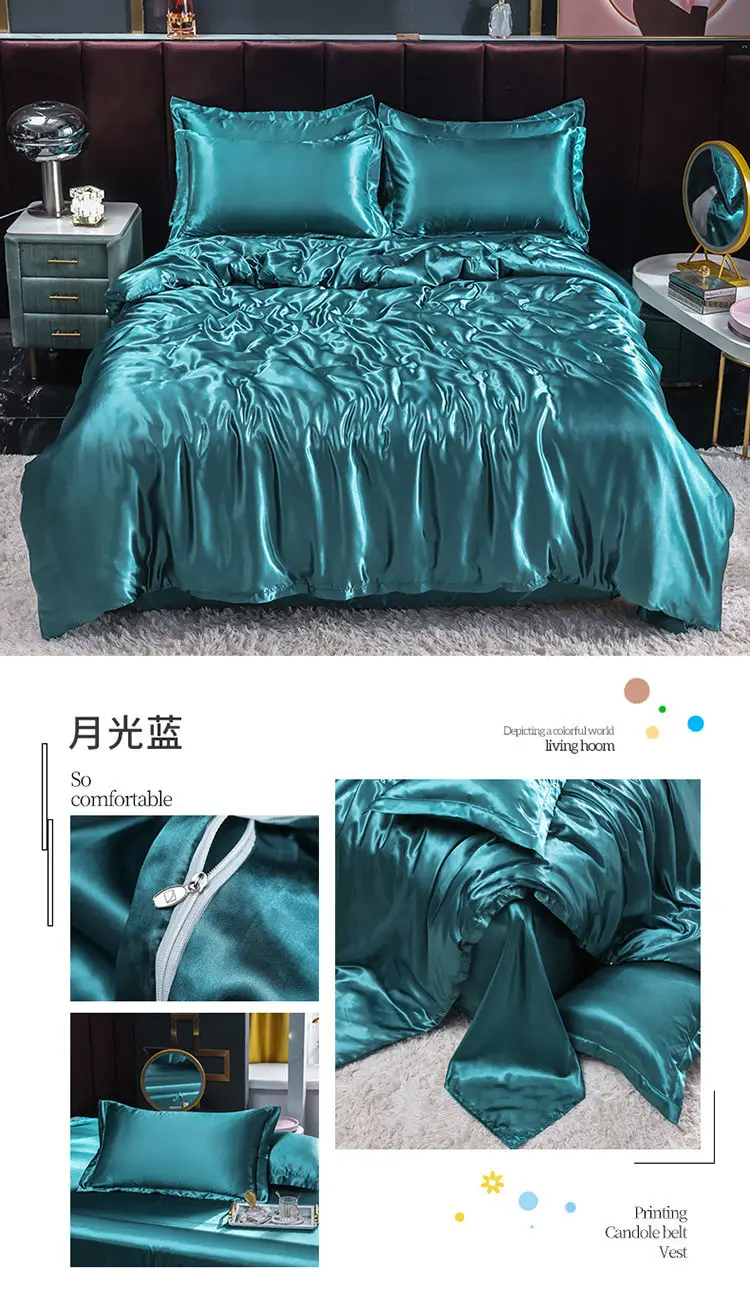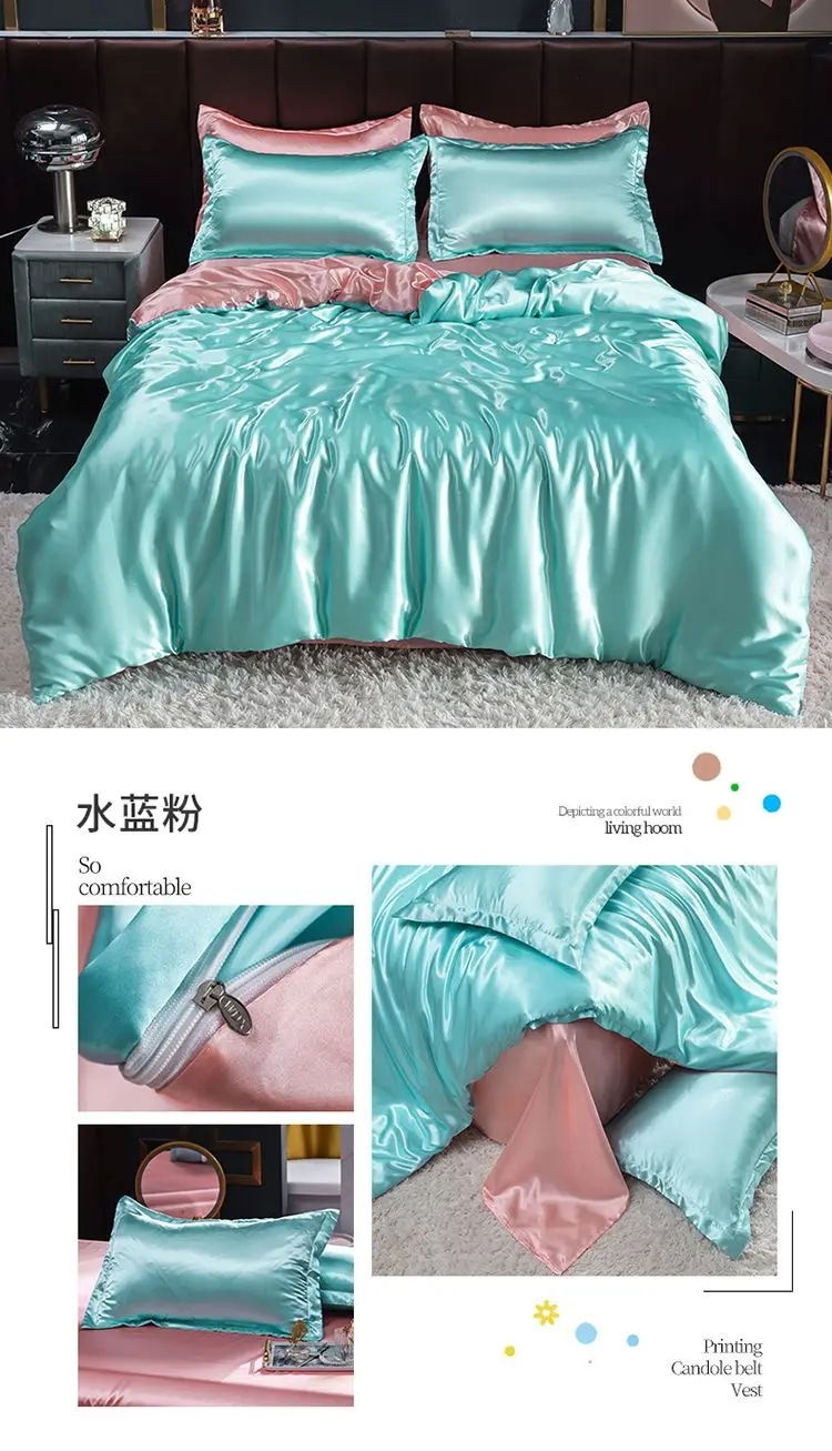 Indulge in Luxury with Our Premium Ice Silk Satin Bedding Set - Elegant Solid Color Duvet Cover and Pillowcase Collection for a Sophisticated Bedroom Makeover