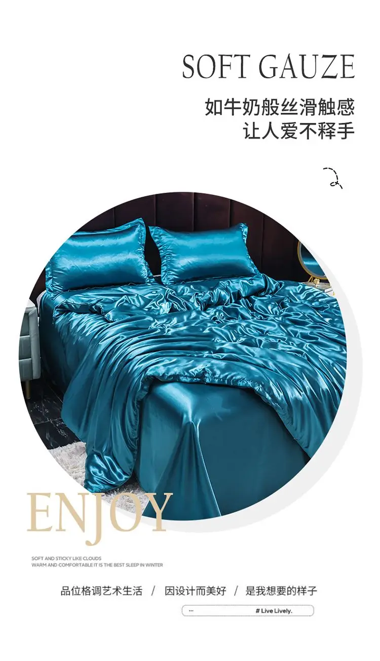 The Premium Ice Silk Satin Bedding Set is versatile and suitable for various occasions, whether you are redecorating your home or preparing for guests. With its elegant design, it complements a range of interior styles, from minimalist to contemporary. The bedding set includes a duvet cover, two pillowcases, and a fitted sheet, making it a complete solution for your bedding needs. Enjoy the luxurious feel of satin while adding a touch of class to your sleeping space.