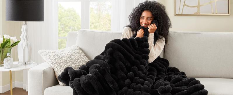 - Exceptional Warmth and Thickness - With a total of 750GSM, our fur blanket provides perfect thickness, ensuring warmth and comfort year-round. It's thick but not heavy, warm but not stuffy, enveloping you in warmth on chilly nights in fall or winter, and providing cozy comfort for any occasion.